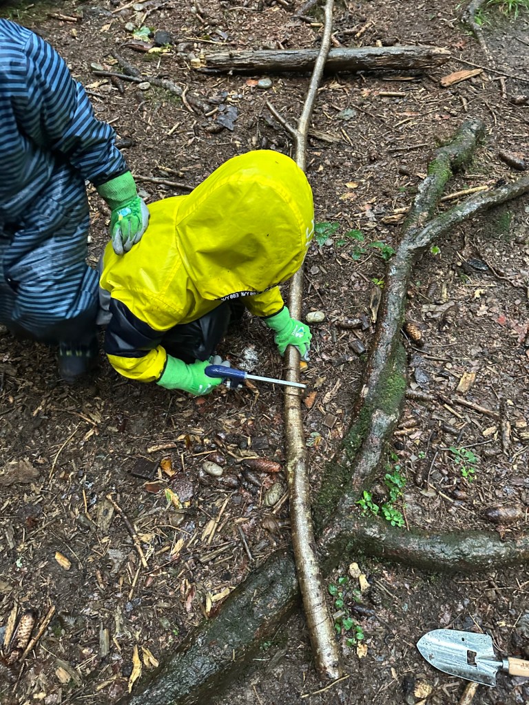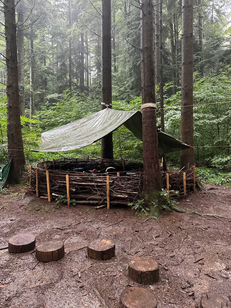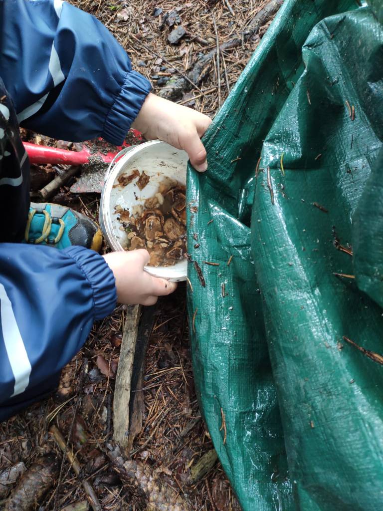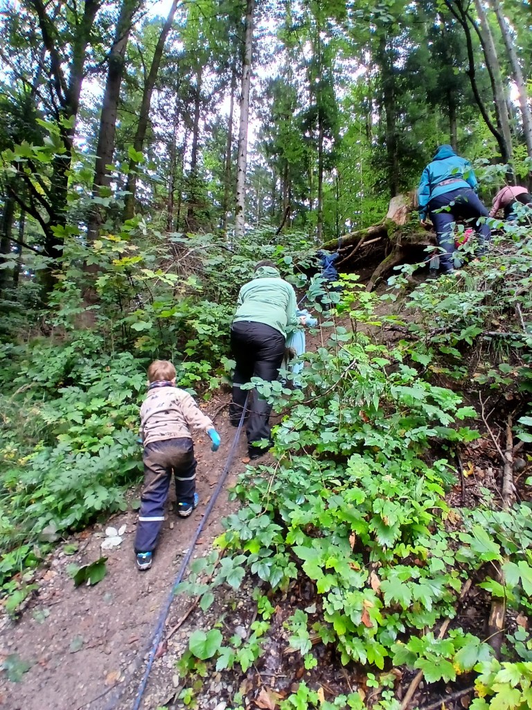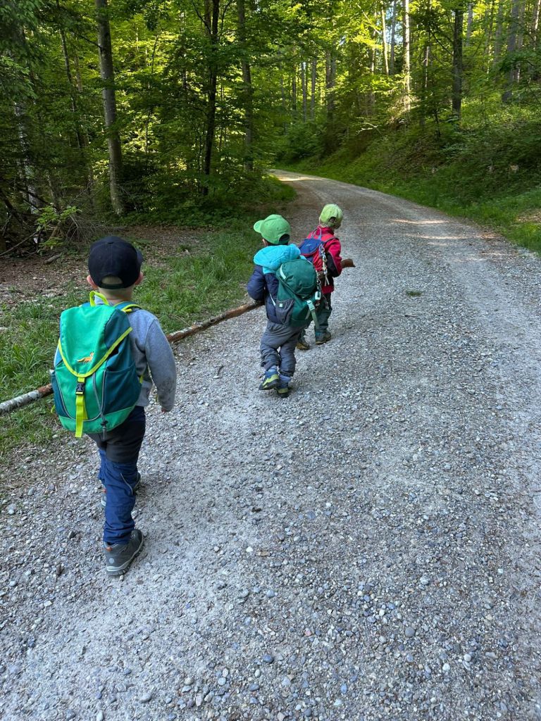 Im Wald hat es fast immer Zecken. Sie sollten Ihrem Kind lange und leichte Kleider (z.B. langärmliges T-Shirt) anziehen. Wir empfehlen, die Socken über die Hosenbeine zu ziehen. Bedeckte Haut ist ein guter Zeckenschutz. Denken Sie auch an Zeckenschutzmittel oder wenn Sie eine natürliche Alternative suchen, können Sie Ihr Kind mit einem biologischen Kokosöl einreiben. Gutes Schuhwerk wie Wander- oder Trekkingschuhe, welche über die Knöchel gehen. Bitte suchen Sie ihr Kind anschliessend immer auf Zecken ab.