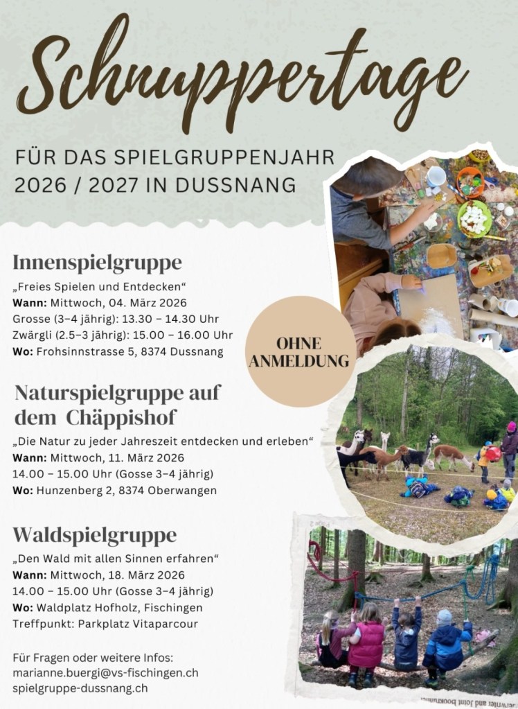 Infos zu den Schnuppertagen bei Aktuelles und News